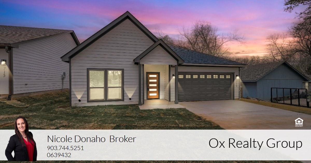 Welcome to this stunning, newly built home, thoughtfully crafted to embody modern luxury with an open-concept design. From the moment you step inside, the spacious layout captivates you, seamlessly blending comfort and sophistication. The expansive living area boasts soaring cathedral ceilings and flows effortlessly into the dining and kitchen spaces—perfect for both entertaining and everyday living. The primary suite provides a serene retreat with picturesque backyard views, while the two additional bedrooms offer ample space, complete with walk-in closets. The master bath features a stylish barn door, adding a touch of rustic elegance. Enjoy outdoor living with a covered patio, perfect for relaxation. Tucked away in Denison, this home offers the ideal balance of small-town charm and modern amenities. The revitalized downtown district showcases historic 19th-century architecture along charming brick-paved streets, home to antique shops, boutiques, art galleries, and a vibrant dining scene.